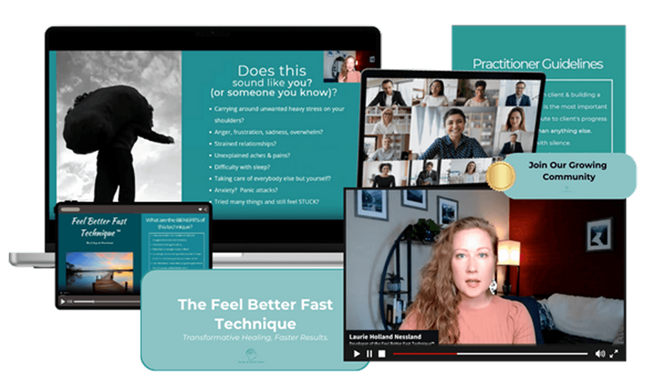 I’m here to share everything I’ve learned so you can grow your practice and help your clients thrive. Whether you’re just starting out or looking for new tools to add to your toolkit, the Feel Better Fast Technique™ is here to help you make a bigger impact. Let’s make healing faster, deeper, and more meaningful—together.